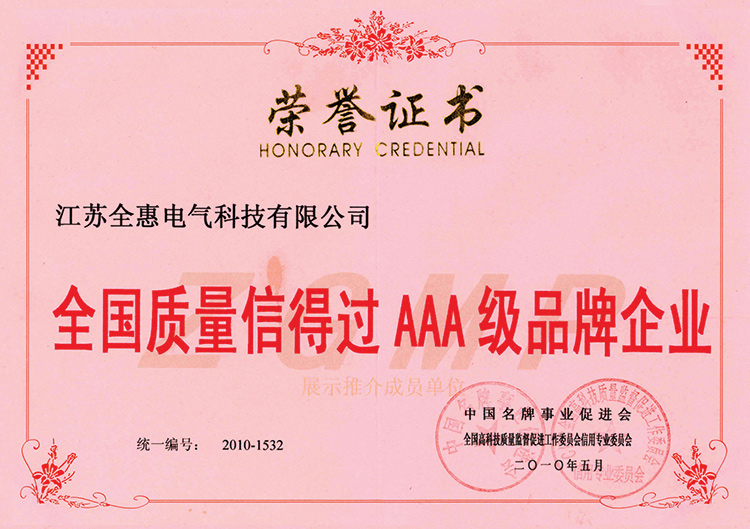 全國質(zhì)量信得過AAA級(jí)品牌企業(yè)