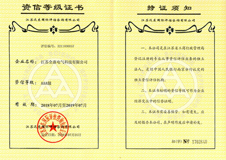 AAA資信等級(jí)證書