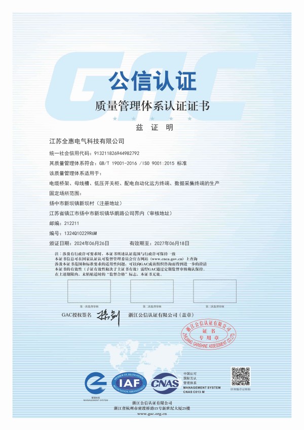 質(zhì)量管理體系認(rèn)證證書